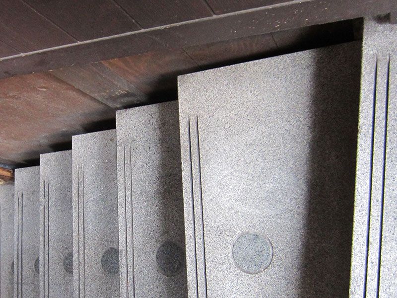 御影石の上にタイルをはりつけており、タイルをはがした後に残った接着剤の除去作業を行いました。
