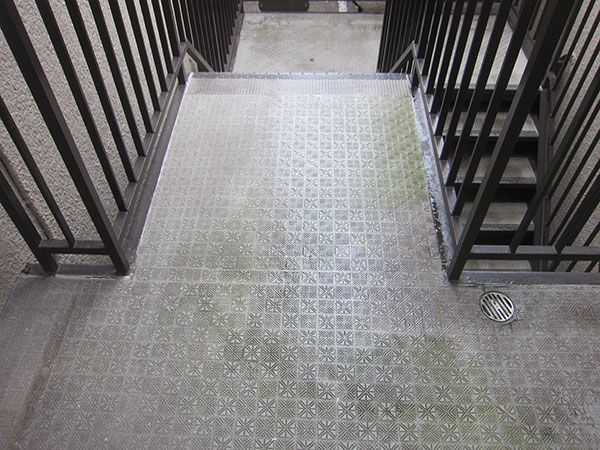 雨が続くとカビや苔で階段が滑りやすくなります。